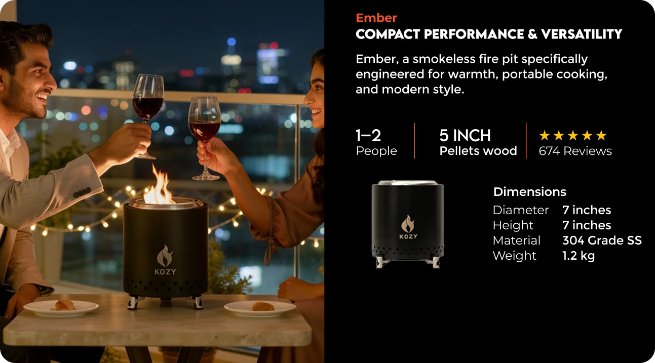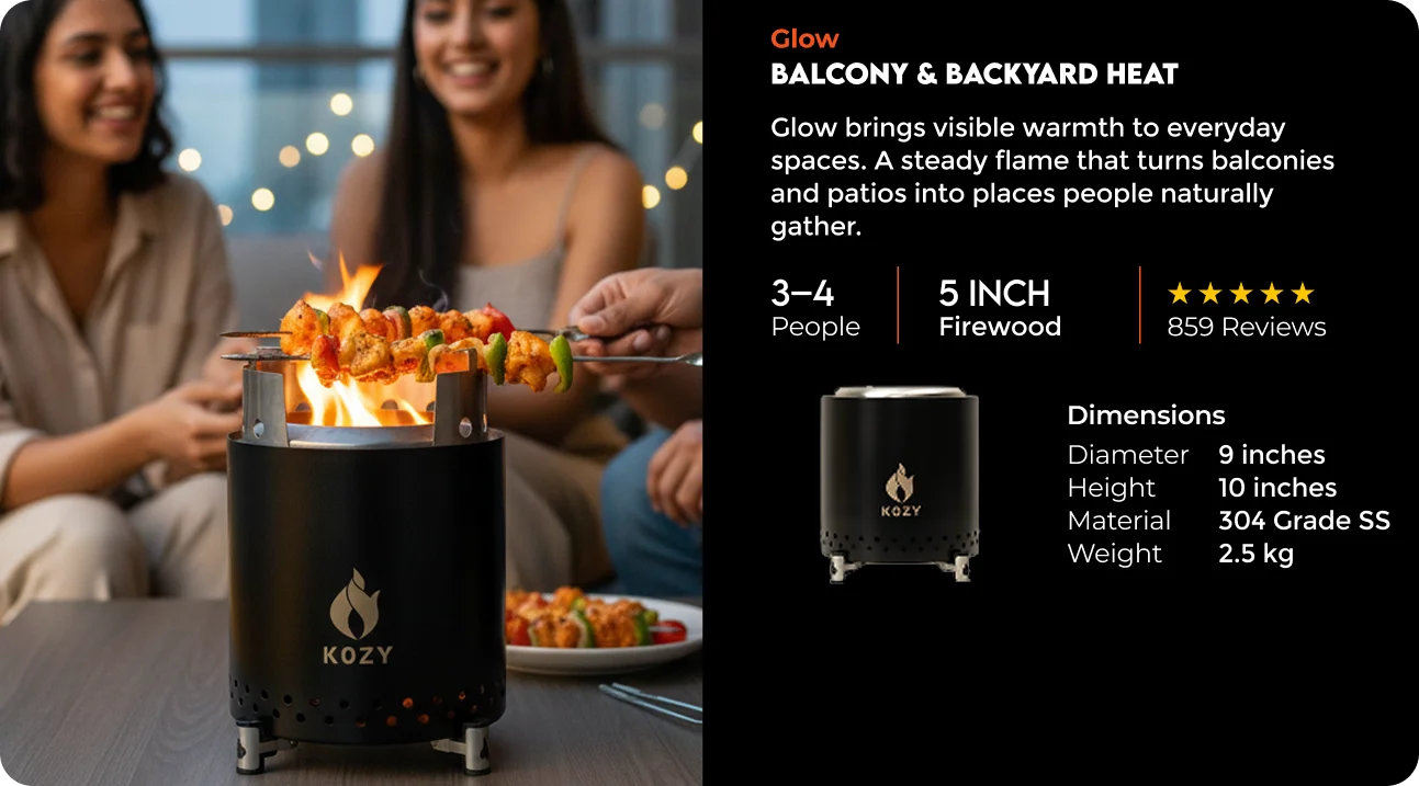KOZY is designed to give you real wood fire without the usual hassle. No messy setup. No constant adjusting. Just clean, steady flames you can enjoy for warmth, cooking, and slow outdoor moments.